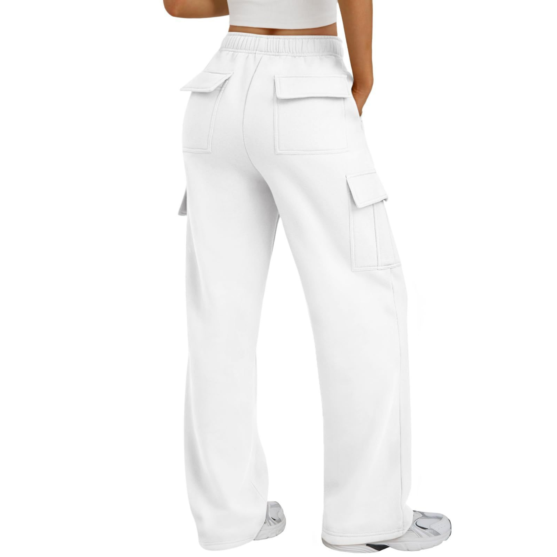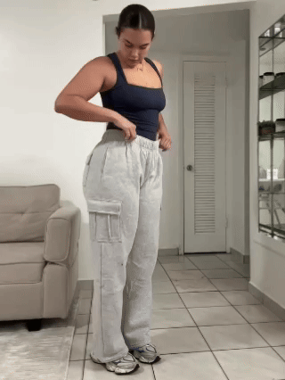 Yes, the drape, pocket placement, and straight-leg cut create a smooth, lifted shape that stays flattering even with a looser fit.